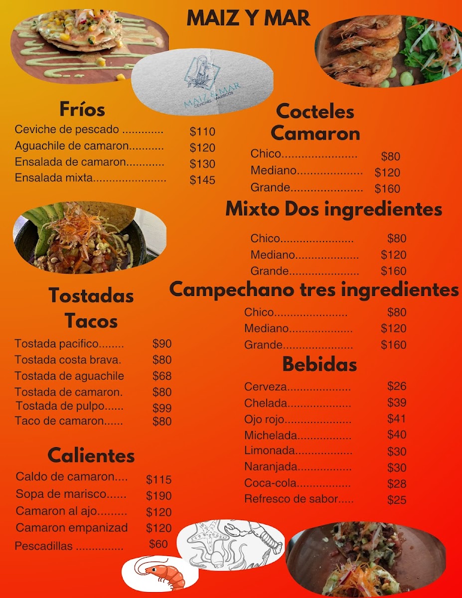 The menu at Corn & Cea in Crucecita, Oaxaca, offers a delightful variety of seafood dishes, each bursting with fresh, bold flavors. A standout on the menu is the Aguachile de Camaron, a zesty and refreshing dish with shrimp marinated in tangy lime juice and spiced with serrano chilies, making it an ideal choice for those who enjoy a bit of heat. Another popular option is the Ceviche Mixto, which combines a medley of seafood in a citrus marinade, delivering a perfect balance of tang and savory goodness. For those seeking something unique, the Aguachile Divorciado presents a twist on the classic, featuring two distinct salsas that complement the shrimp in an exciting contrast of flavors. The Tostada de Pulco is another must-try, offering a crisp, satisfying base topped with tender octopus and a flavorful mix of seasonings, ideal for a quick bite. Lastly, the Cocktail Mixto 3 Ingredientes offers a fun, customizable seafood cocktail with three ingredients of your choice, allowing for a personalized taste experience. Each dish is crafted with care, highlighting the restaurant's focus on fresh, high-quality seafood that is sure to leave diners satisfied.